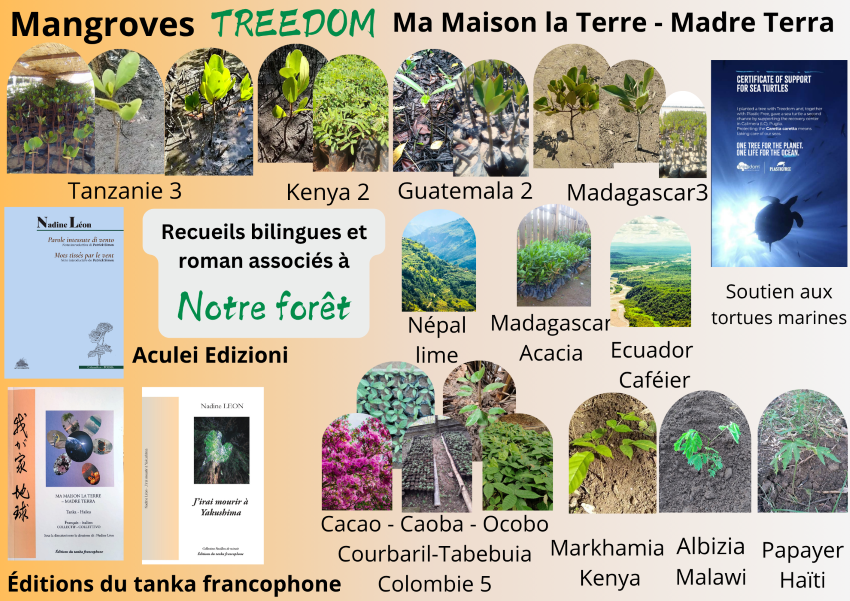 Le mouvement poétique international Ma Maison la Terre est associé à des plantations d'arbres à l’intérieur d’activités d’agroforesterie et de mangroves, comprenant un don de soutien au mouvement Plastic Free et aux tortues marines.